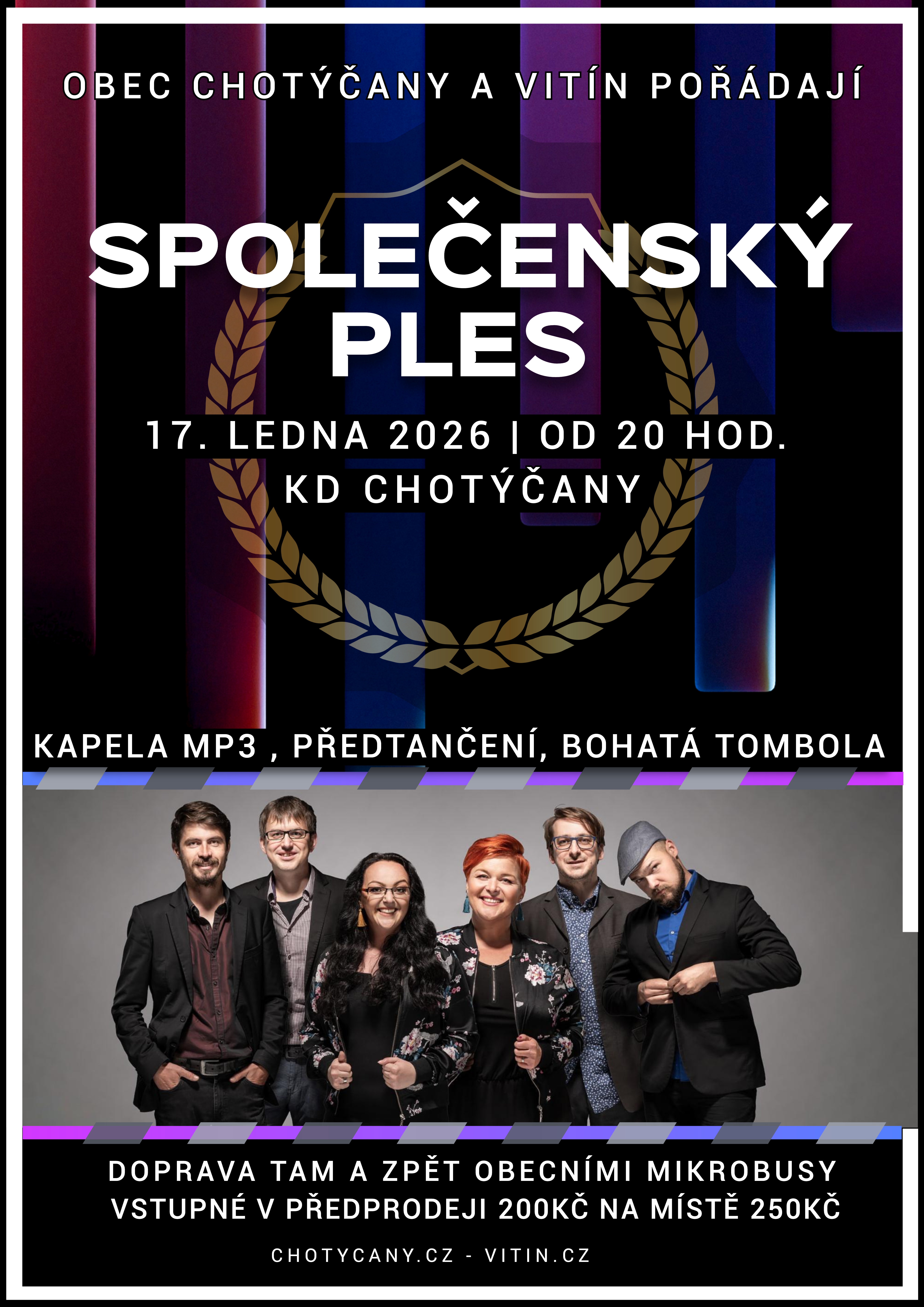 Předprodej vstupenek je již zahájen. Pro rezervaci míst kontaktujte prosím Obecní úřad Vitín. Pozor, loni byl ples vyprodán!
